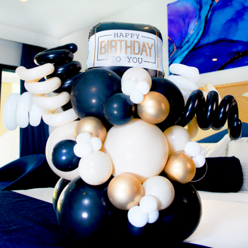 2-4 colors of balloons, 2 foil balloon numbers (and/or a foil number balloon and "HAPPY BIRTHDAY" balloon).